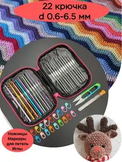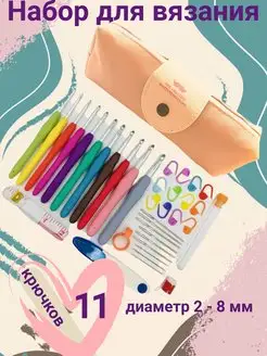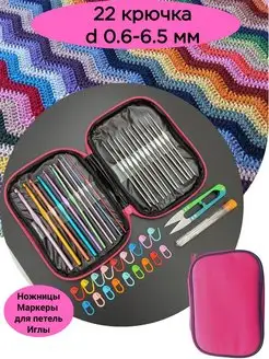 Набор крючков для вязания с ручкой силикон ножницы в пенале