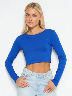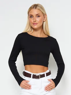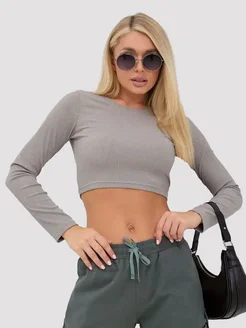 Лонгслив в рубчик укороченный спортивный c длинными рукавами