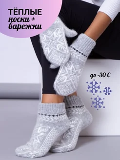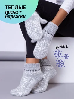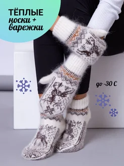 Подарочный комплект на Новый год варежки и носки меринос