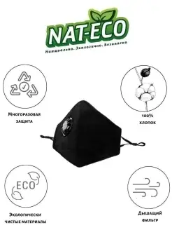 Маска защитная с угольным фильтром, из хлопка, многоразовая