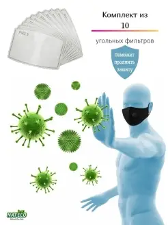 Угольные фильтры для многоразовых масок, 10 штук