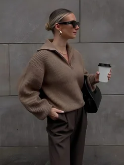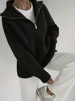 Удлиненный поло свитер оверсайз с горлом на молнии y2k