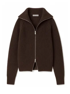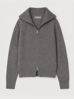 Удлиненный теплый вязаный оверсайз свитер на молнии с горлом