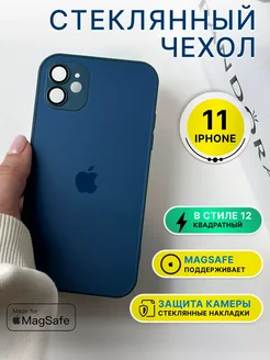 Чехол на iphone 11 стеклянный с MagSafe противоударный