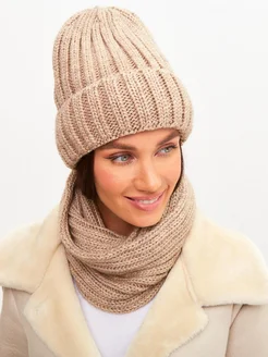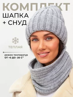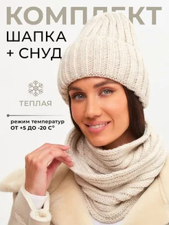 Шапка зимняя вязаная со снудом комплект