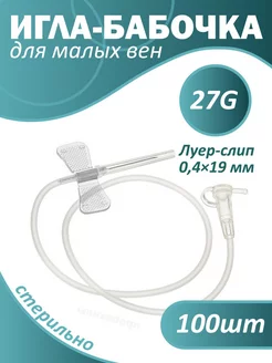 Игла-бабочка 27G 0.4х19мм 100шт. Для вливаний в вены