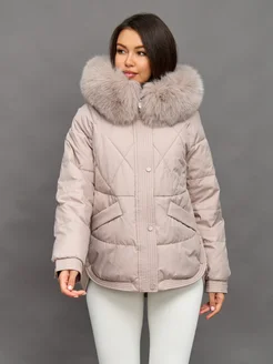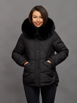 Пуховик зимний короткий с капюшоном и мехом