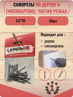 Саморез по дереву и гипоскартону 3,5*51 в пачке 20 шт черные