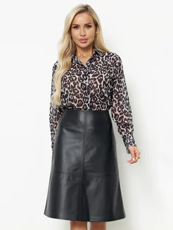 Юбка кожаная миди трапеция