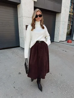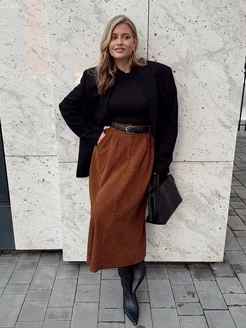 Юбка офисная миди вельветовая