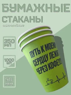Бумажные стаканы 1 слой "Путь к сердцу" 350 мл 1000 штук