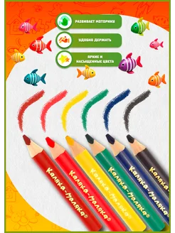 Карандаши цветные для детей укороченные, утолщенные 6 штук
