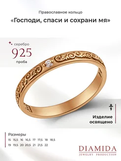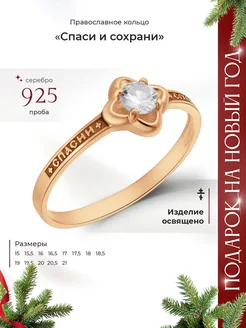 Кольцо православное Спаси и Сохрани серебро с позолотой
