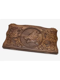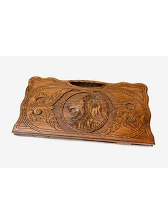 Резные нарды "Голова лва" деревянные с ручкой, большие 60см