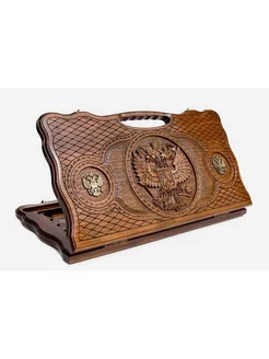Резные нарды "Герб РФ с бронзы" из дерева с ручкой, 60см