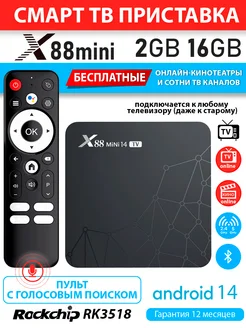 Смарт ТВ приставка X88 mini 14TV 2 16Gb Android 14