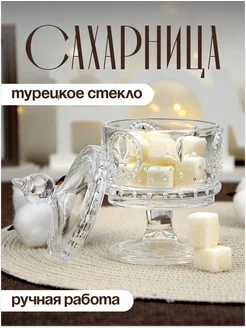 Сахарница стеклянная на ножке креманка для варенья
