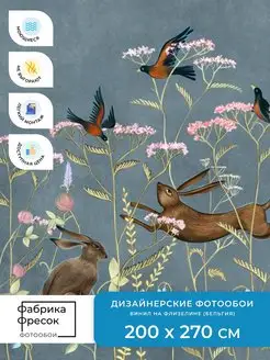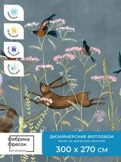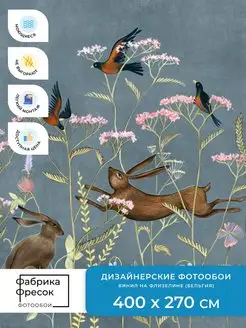 Фотообои Детские Зайцы в цветах в детскую игровую Флизелин