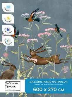 Фотообои Детские Зайцы цветах в детскую игровую Флизелин