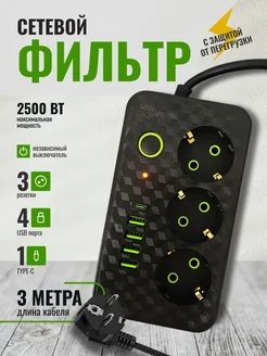 Сетевой фильтр,удлинитель,тройник, USB-TYPE-C 3Метра