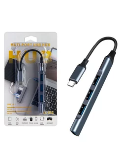 Переходник Type-C на 4 USB серый