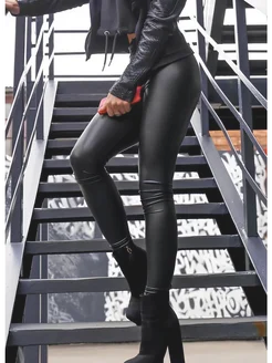 Легинсы кожаные Без начеса лосины экокожа с карманами