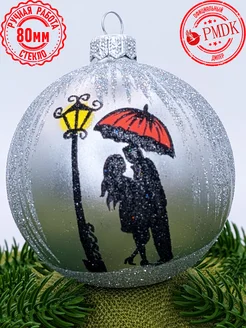 Новогодний елочный шар Поцелуй под зонтом 80мм стекло