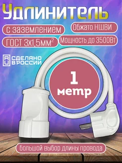Удлинитель 1 метр 1 розетка 10а безопасный