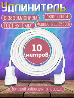 Удлинитель сетевой электрический 3 розетки 10 метров