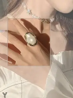 Крупное кольцо бижутерия винтажное со вставкой из жемчуга