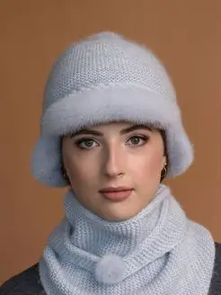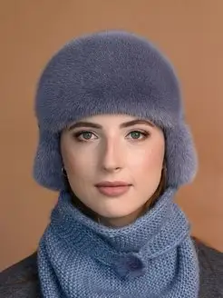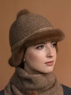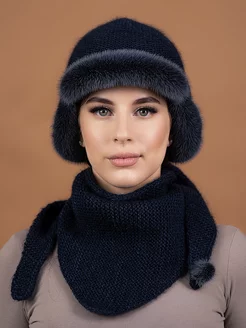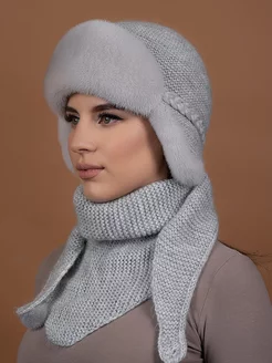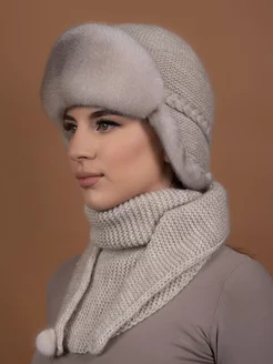 шапка меховая вязаная с косынкой