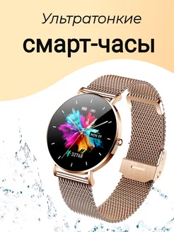 Смарт часы Т8 женские ультратонкие золотистые 1.36 дюйма
