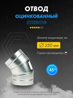 Отвод вентиляционный оцинкованный круглый D250 мм 45°