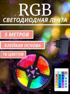 Светодиодная лента rgb led диодная подсветка 5м многоцветная
