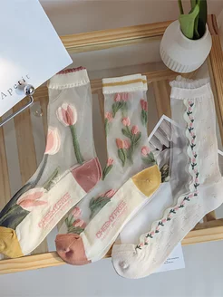 Тонкие высокие носки с цветочным ворсом 3 пары