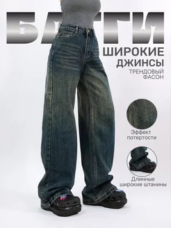 Джинсы женские широкие прямые от бедра с высокой посадкой
