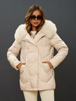 Пуховик короткий с натуральным мехом