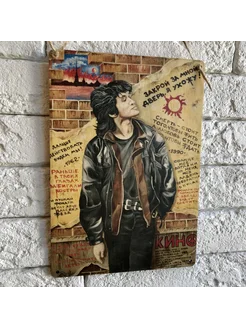 Картина на дереве, интерьерная "В.Цой" 19х27 см