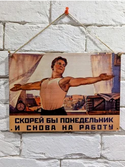 Плакат на дереве. Скорей бы понедельник. 19х27 см