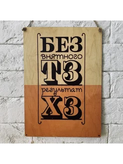 Табличка "Без внятного ТЗ результат ХЗ", дерево, 19х27