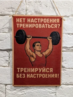 Постер на дереве "Тренируйся" 19х27х0,4 см