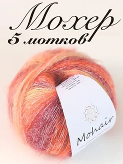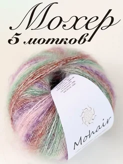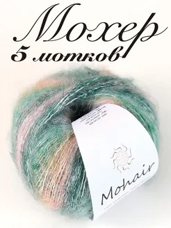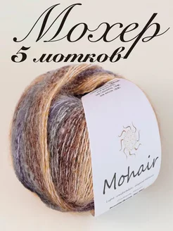 Мохер пряжа нитки секционная для вязания 5 мотков по 25гр