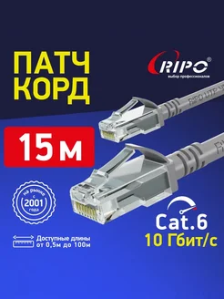 Патч-корд UTP4 Cat 6, RJ45, 15 m PVC серый