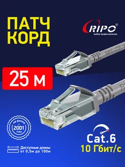 Патч-корд UTP4 Cat 6, RJ45, 25 m PVC серый