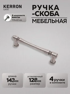Мебельная ручка скоба 128 мм старинное серебро 4 шт