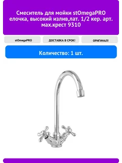 Cмеситель для мойки елочка, высокий излив,лат. 1 2, 1 шт