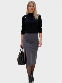 Юбка в рубчик на резинке прямая с разрезом весенняя
