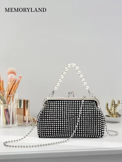 Сумка со стразами и жемчугом через плечо
