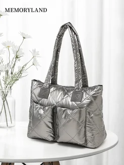 Сумка шоппер дутая на плечо зимняя Большой размер