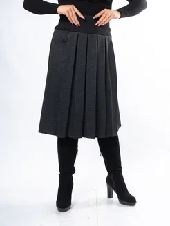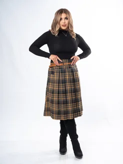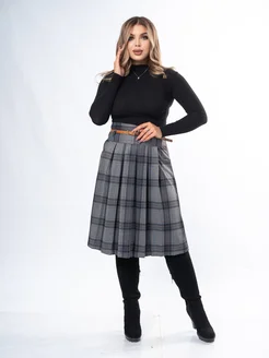 Юбка осенняя в складку миди в клетку